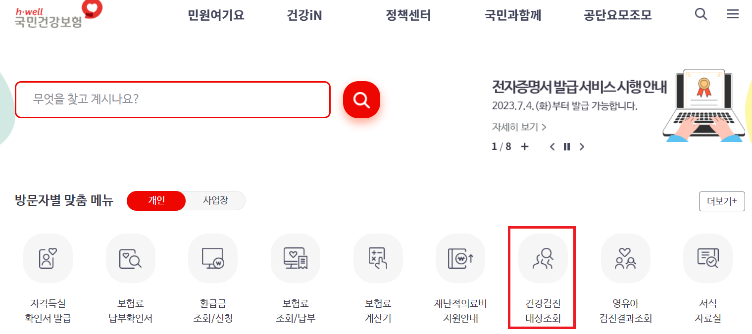 건강검진 대상자 여부는 국민건강보험공단 홈페이지에서 확인할 수 있습니다.